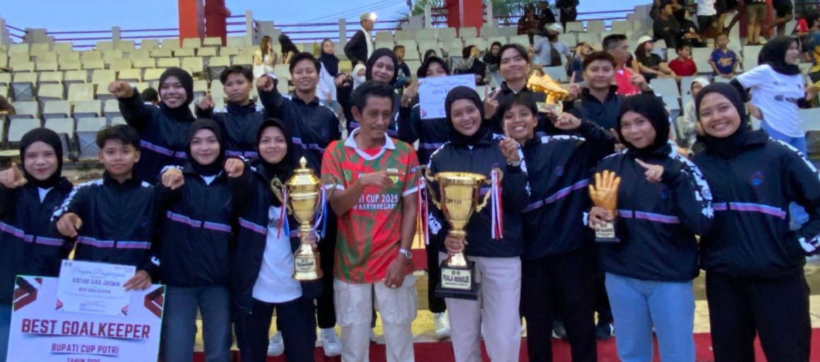 “Kami sangat bersyukur dan bangga, serta berterima kasih kepada para pelatih, manajer, dan seluruh pemain yang sudah berjuang dengan maksimal. Alhamdulillah, tahun ini Kami bisa kembali mempertahankan gelar juara satu di Bupati Cup putri,” ujarnya, Sabtu (27/9/2025).